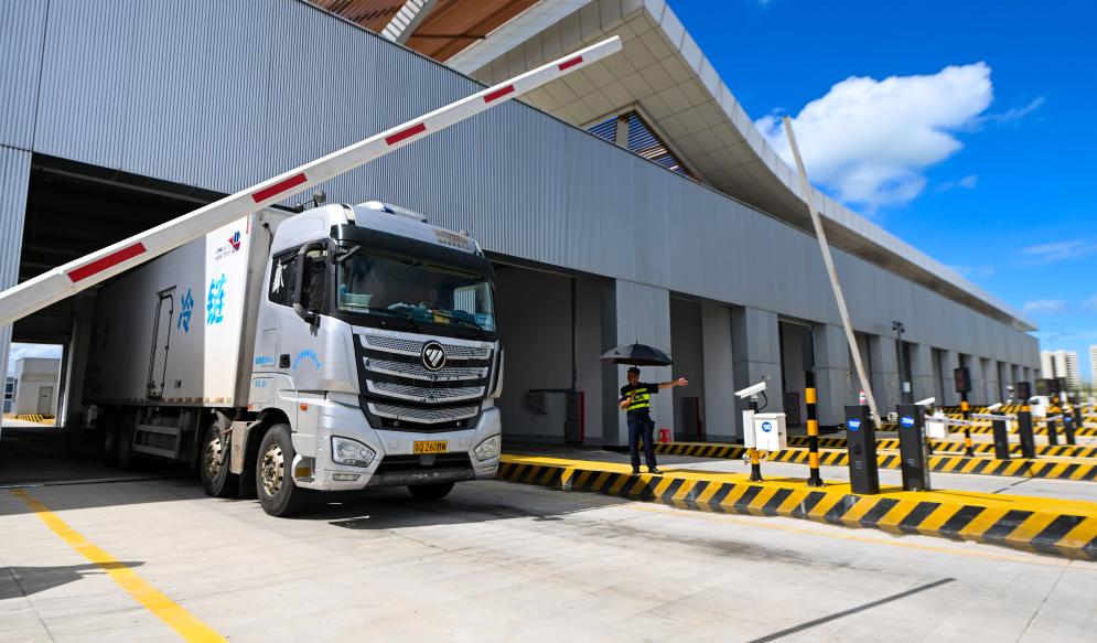 2025年9月17日,離島貨車通過海口新海港和南港“二線口岸”(貨運)集中查驗場,開往港區(qū)。新華社記者 楊冠宇 攝