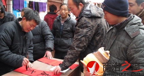 春節前,商州區沙河子鎮上的書法家們來到集市,為群眾義務寫春聯。(記者 賈書章 攝)