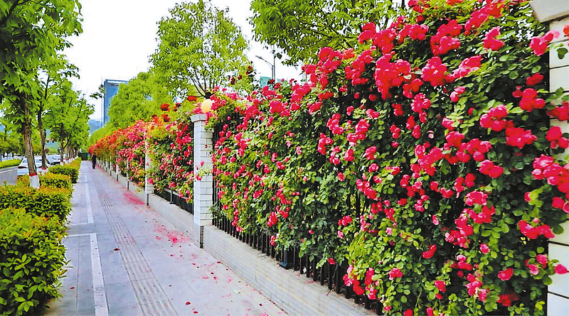 初夏時節(jié),風(fēng)暖人間。行走在商鞅大道兩旁,姹紫嫣紅的月季