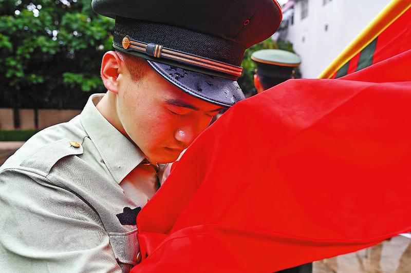 連日來,秋雨綿綿,為這個揪心的季節又增添了幾分傷感。在這個莊重而又難忘的時刻,官兵們全然不顧渾身被雨水打濕,雨中卸銜,分不清劃過臉頰的是雨水還是淚水。
