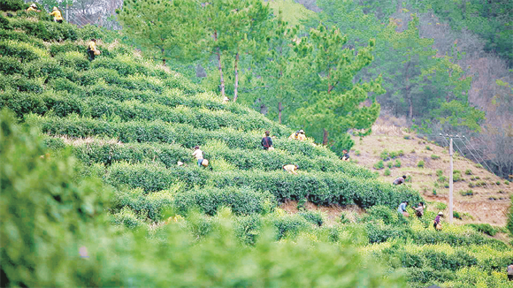 春光有限貴如珍,萬畝良田勞作頻。3月的商山大地,綠油油的麥田遍布沃土,一株株茶樹在風和日麗中吐露出了翠綠的嫩芽,一棵棵果樹開滿了嬌艷的花……