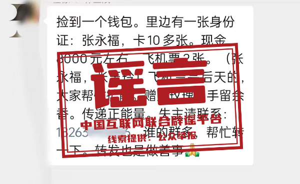 謠言:???多地有人撿到錢包、接力轉發“失物招領”信息?