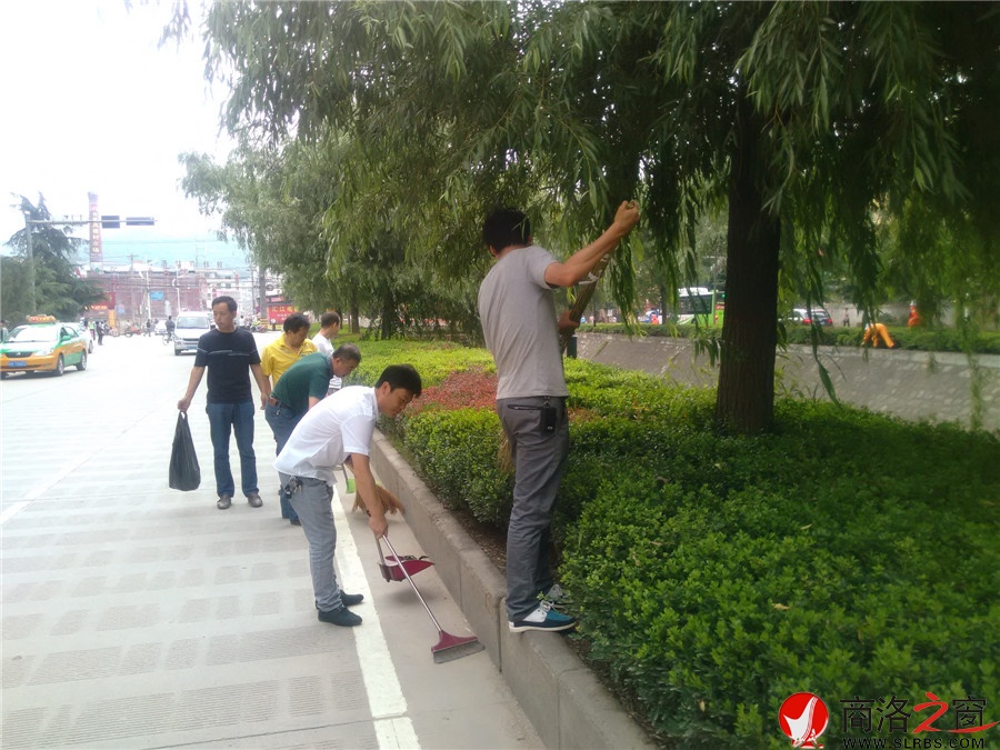 商洛日報社組織職工清潔街道。(支曉宇 李小軍 攝)