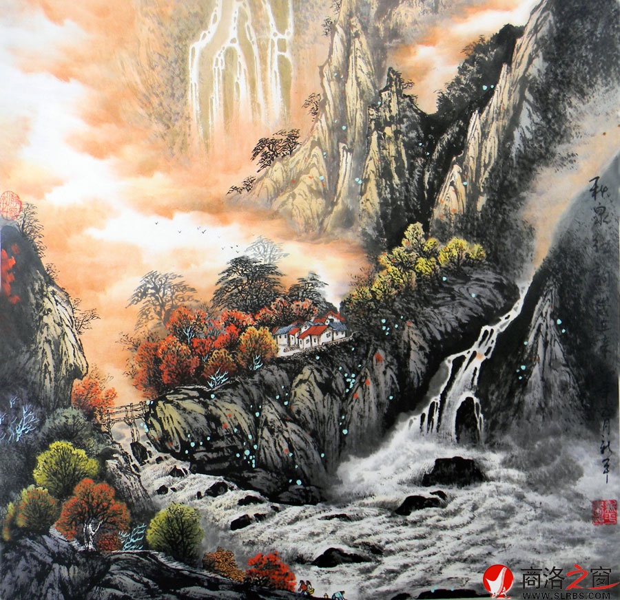 秋泉紅韻(國畫)