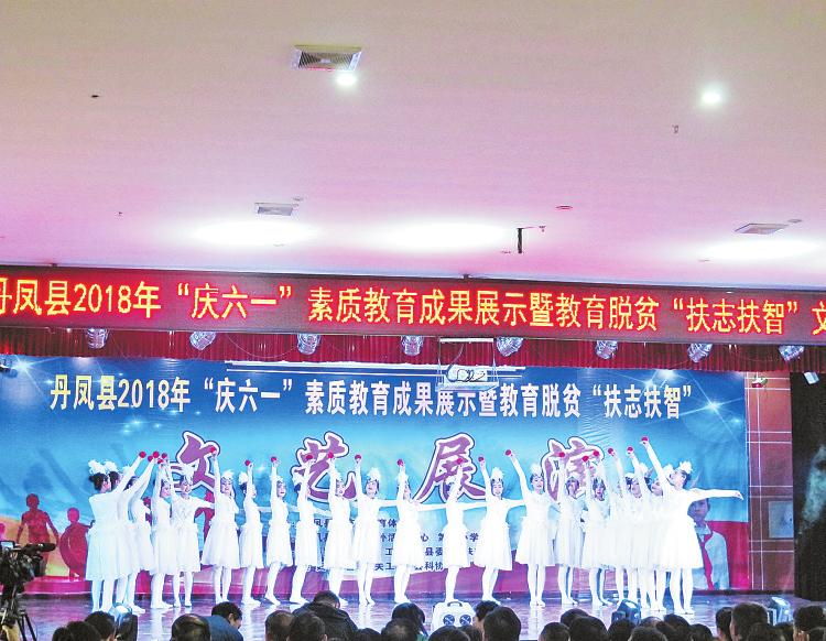 丹鳳縣舉辦了2018年“慶六一”素質教育成果展示暨“扶志扶智”文藝匯演活動。各中小學校高度重視,認真組織,制作書法、繪畫、剪貼畫等作品上萬件,設計制作手工科技等作品3000余件,編制課件、活動案例200余篇。參展作品種類眾多,表現形式豐富多彩,展示了全體同學努力學習、全面發展的熱情,反映了廣大師生對美的渴望、對祖國的無限熱愛,更體現了同學們立志脫貧的信心和決心。“扶志扶智”文藝匯演活動由縣科教體局主辦,縣青少年校外活動中心和第三小學承辦,并得到了縣委宣傳部、縣總工會、團縣委、縣扶貧局、縣婦聯會、縣關工委、縣科協等單位的大力支持。舉行了文藝展演活動,全縣共推選出20個優秀節目參加展演,節目豐富多樣,涵蓋了舞蹈、情景劇、小品、快板、武術、演唱等多個類型。通過中國移動“和商務直播”進行現場直播,點擊率超過萬人次。