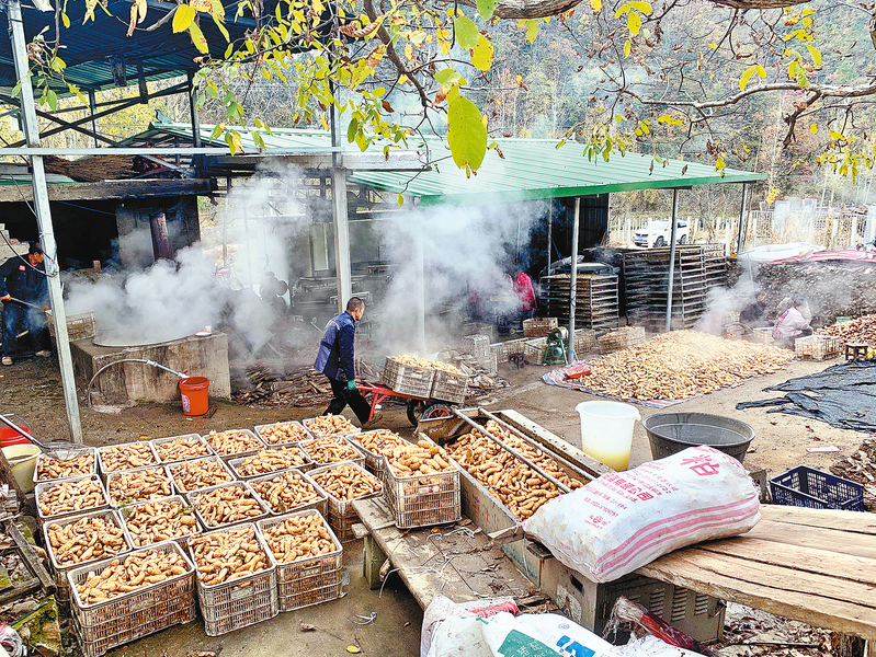 蒸煮、晾曬天麻。(本報通訊員 王盈琳 攝)