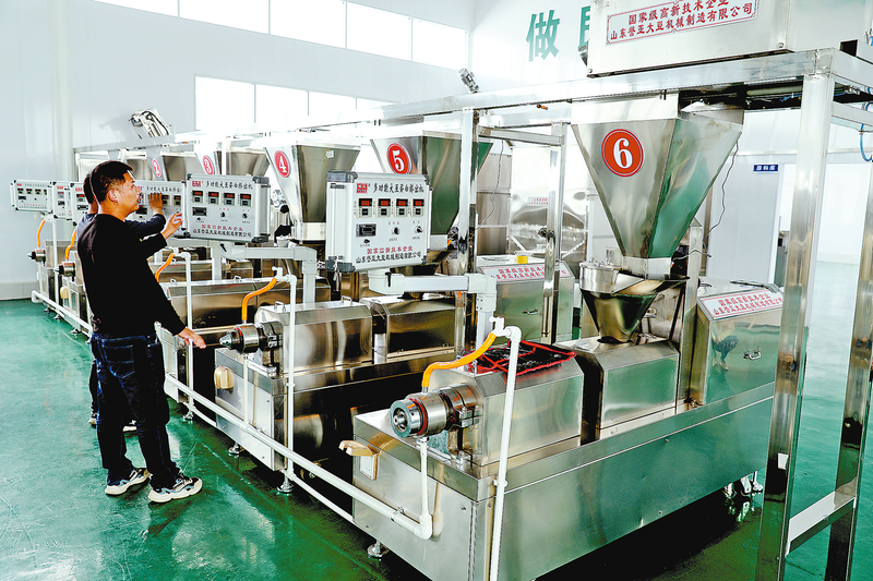 △位于竹林關鎮的陜西李氏凱農生物科技有限公司主要加工魔芋制品,今年該公司又引進了豆制品生產線。圖為工作人員在調試新設備。