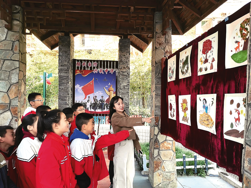 近日,丹鳳縣第五小學組織學生開展第三屆樹葉粘貼畫主題實踐活動,各班學生積極參與,讓學生在創作中獲得樂趣和知識,激發了學生的創造力,豐富了他們的校園生活。 (本報通訊員 高 鴻 攝)