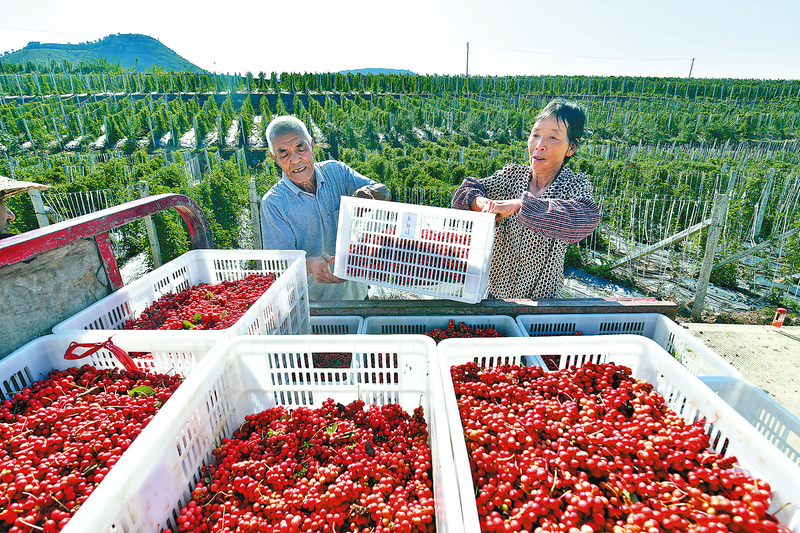 近日,洛南縣保安鎮黑潭村1000畝五味子示范園的五味子已進入采收期,紅紅火火、色彩明艷的“紅串串”成為助力鄉村振興、增進群眾創收致富的“錢串串”。近年來,洛南縣借助蘇陜協作平臺,流轉閑置土地大力發展五味子種植產業,多個鎮辦成立五味子專業合作社,形成苗木繁育、田間管理、果實采摘、分揀烘干等于一體的五味子產品加工產業鏈。(本報記者 楊 鑫 通訊員 吳書懷 攝影報道)