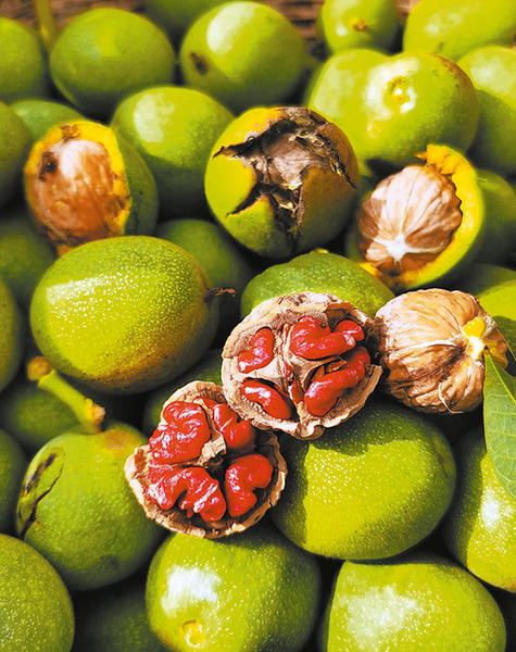 △紅仁核桃具有仁色鮮紅、營養價值極高、口感酥脆微甜等特點,深受顧客歡迎。