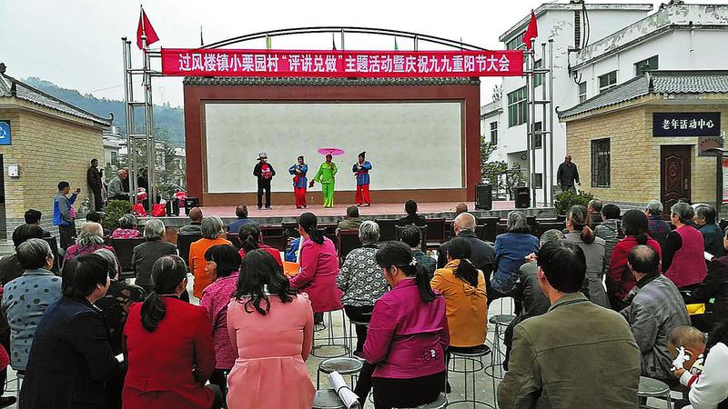 10月18日,商南縣富水鎮馬家溝村舉行慶祝九九重陽節文化演出暨脫貧攻堅先進典型評選表彰活動,對在孝老愛老、脫貧攻堅、創業就業等方面涌現出的耿麗等34名先進典型進行了命名表彰,還為村民送上了小品《懶漢脫貧》、黃梅戲《婆媳之間》等接地氣的文藝節目。