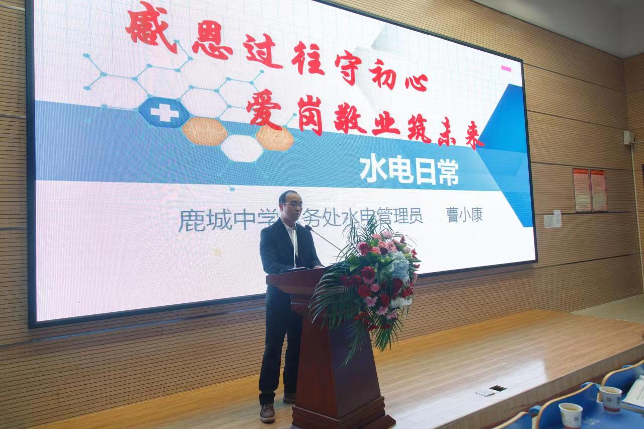 報告會上,鹿城中學六名教師代表分別講述了日常工作中愛崗敬業、擔當作為、甘于奉獻的先進事跡。趙利民老師對工作愛得癡狂,對學生愛得真切;李莉老師用母愛般的溫暖喚回孩子心靈深處的自信,以綠葉情懷呵護“花兒們”茁壯成長、絢麗綻放;李書華老師言傳身教、包容接納,引領學生樹立正確“三觀”,創造美好的“未來”;王翔老師用愛播撒希望、用真誠對待學生,滿懷愛心培育時代新人;路新生老師以愛心和耐心搭建起師生之間的情感橋梁,以責任和擔當書寫教育生涯的華麗篇章;曹小康老師維修水電,隨叫隨到,耐心細致,勤懇做事,踏實做人,平凡的崗位演繹出不平凡的感動。