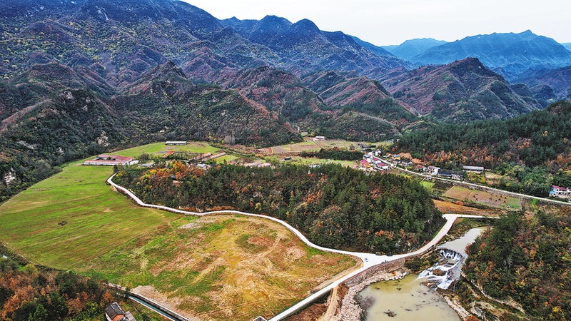 初冬時節,走進商南縣趙川鎮老府灣村,穿過古色古香的門樓,映入眼簾的是一幢幢紅瓦白墻的屋舍、潺潺的滔河水穿村而過,青山隱隱、炊煙裊裊,鳥兒歡唱,一幅和諧美麗的鄉村畫卷徐徐展開。