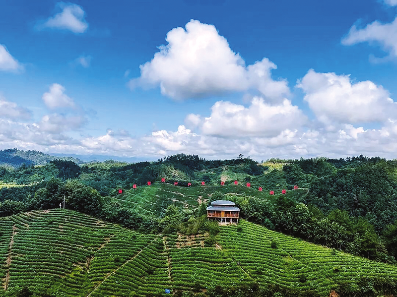晴空下的富水茶海公園,連片茶壟層疊鋪展于山野間,這是商南縣綠色茶產業與生態保護協同發展的生動縮影。(資料圖片)