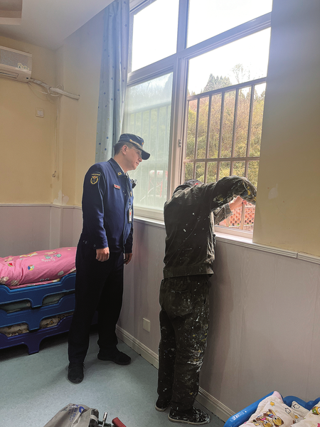 3月29日,在山陽縣星焜幼兒園,工人正在拆除教室窗口的防護(hù)網(wǎng)。“學(xué)生教室、宿舍屬于人員密集場所,安裝全封閉的防盜窗是不符合消防規(guī)范的,經(jīng)前期排查后,今天責(zé)令拆除。”山陽縣消防救援大隊(duì)權(quán)增強(qiáng)說,目前,山陽中學(xué)、山陽第三初級中學(xué)、同仁中學(xué)等9所學(xué)校不符合規(guī)定的防護(hù)網(wǎng)全部拆除到位,并要求各學(xué)校立即加裝窗戶開口限位器,提升校園安全。